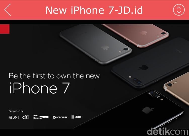 Dari pantauan detikINET, Senin (19/9/2016), situs JD.id mulai membuka pre-order iPhone 7 dan 7 Plus. Ada empat varian warna yang mereka tawarkan, yakni matte black, gold, silver dan rose gold.