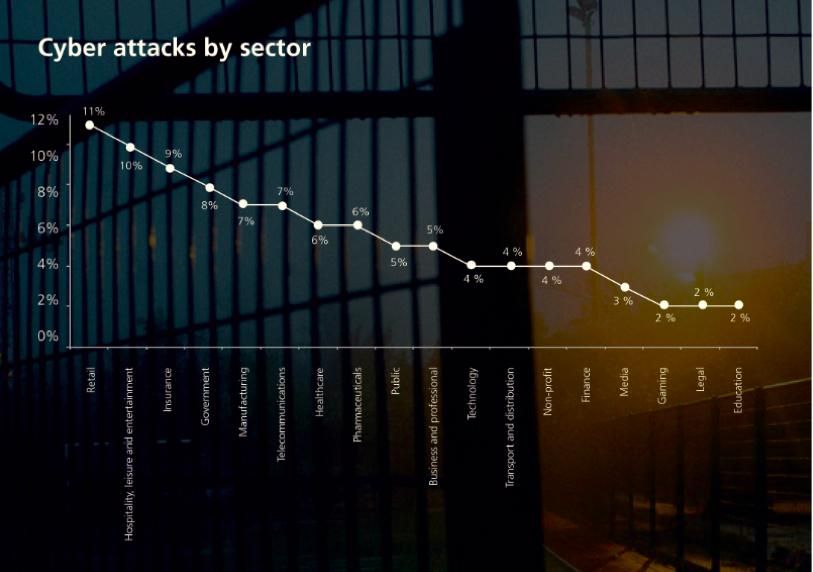 Sektor ritel menduduki posisi teratas daftar serangan keamanan cyber dari semua sektor dengan presentase di bawah 11% dalam laporan tahun ini, menggantikan posisi sektor keuangan dari urutan pertama.